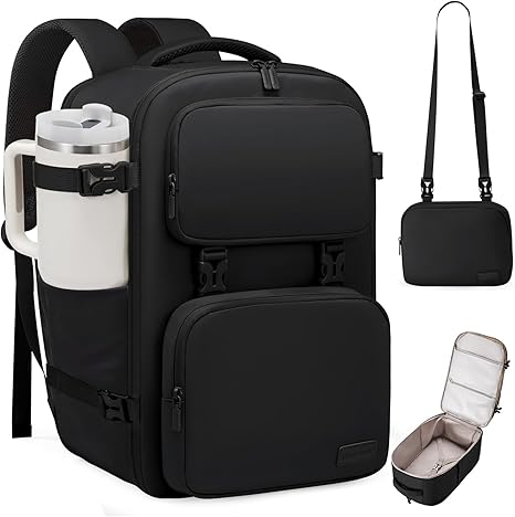 Travel Backpack for Women Men, TSA Carry on Backpack Flight Approved 40L Fits 17 Inch Laptop, Waterproof Personal Item Travel Bag Business Weekender Daypack with Detachable Crossbody Bag